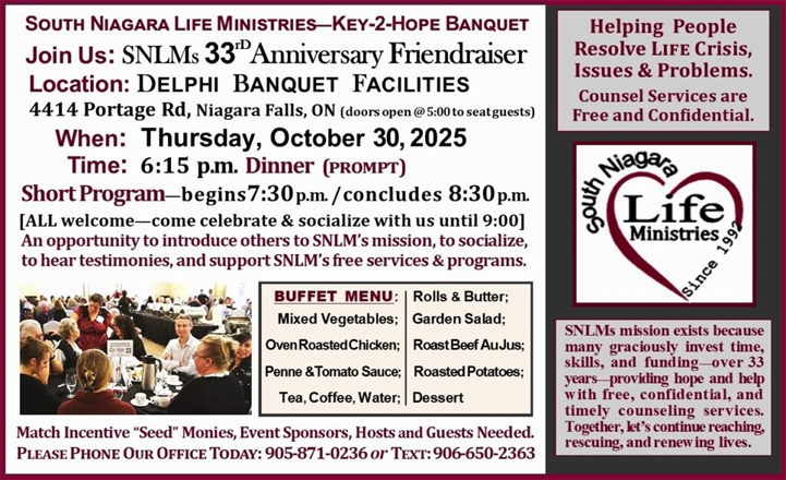 On the average, South Niagara Life Ministries consistently serves 100 to 150 individuals and/or families a monthly – usually in urgent need of counsel, resources, and support. Monthly Gifts and Careholder donors are KEY to sustain SNLM’s charitable mission and vision, rather than government funding; as are third-party initiated fundraisers. We are grateful for all contributions, as are the individuals and families we serve, in need; making the difference in lives being reached, rescued, and renewed.DONATE TODAY